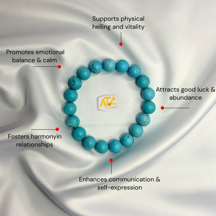 Blue Magnesite Turquoise Bracelet brings good luck, manifest all desires, adds fruit to efforts, makes eloquent, heals every aspect of life, brings happiness to life, imparts wisdom, ends poverty, and gives honour, name & fame.