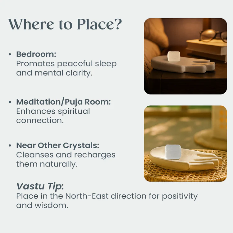 1).Cleanses Aura & Removes Negativity – Ideal for regular energy clearing. 2).Brings Peace & Calm – Reduces mental clutter. 3).Enhances Spiritual Practices – Perfect for meditation & Reiki. 4).Recharge Crystals Without Effort – Just place them nearby. 5).Best for Moon-ruled Signs – Cancer, Pisces.